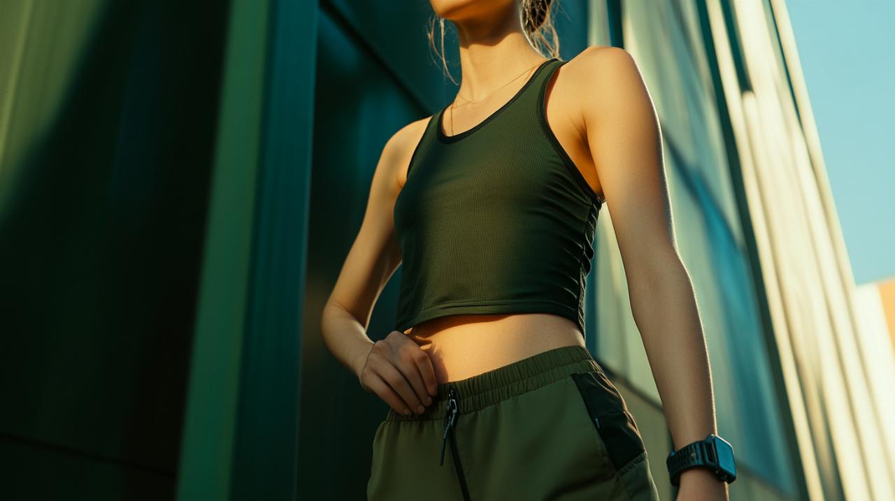 Another creative layering strategy involves using a checked shirt or casual overshirt tied at the waist. This approach adds a playful, relaxed touch to your outfit while also introducing an additional colour or pattern. Choose a shirt in complementary tones, such as a soft blue check paired with an olive tank, or a muted tartan that echoes the earthy palette of your top. Tying the shirt at the waist rather than wearing it fully buttoned creates a sense of movement and asymmetry, breaking up the visual line and adding a dash of personality. This technique works particularly well when you want to maintain the airy, sleeveless quality of the tank while still incorporating an extra layer. It is a styling trick that feels effortless and spontaneous, yet it demonstrates a keen eye for detail. Be mindful of the proportions, ensuring that the tied shirt does not add bulk or disrupt the flow of your silhouette. When executed correctly, this method can elevate your military tank top outfit from simple to striking.